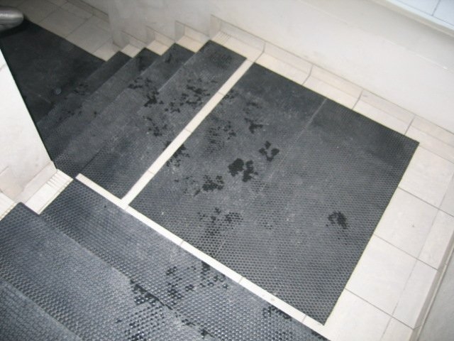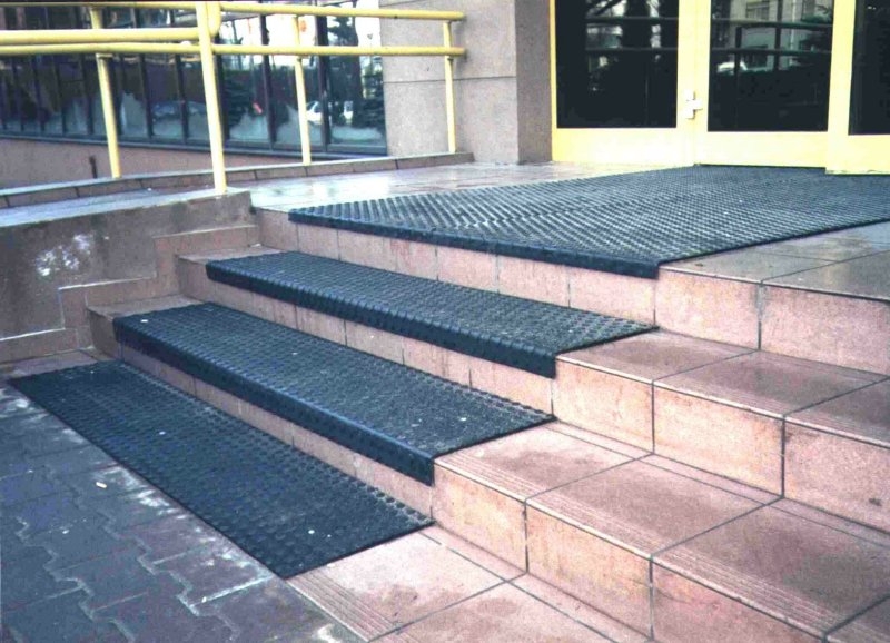 Materiały gumowe używane jako antypoślizgowe nakładki na schody, kładki, estakady, pomosty.